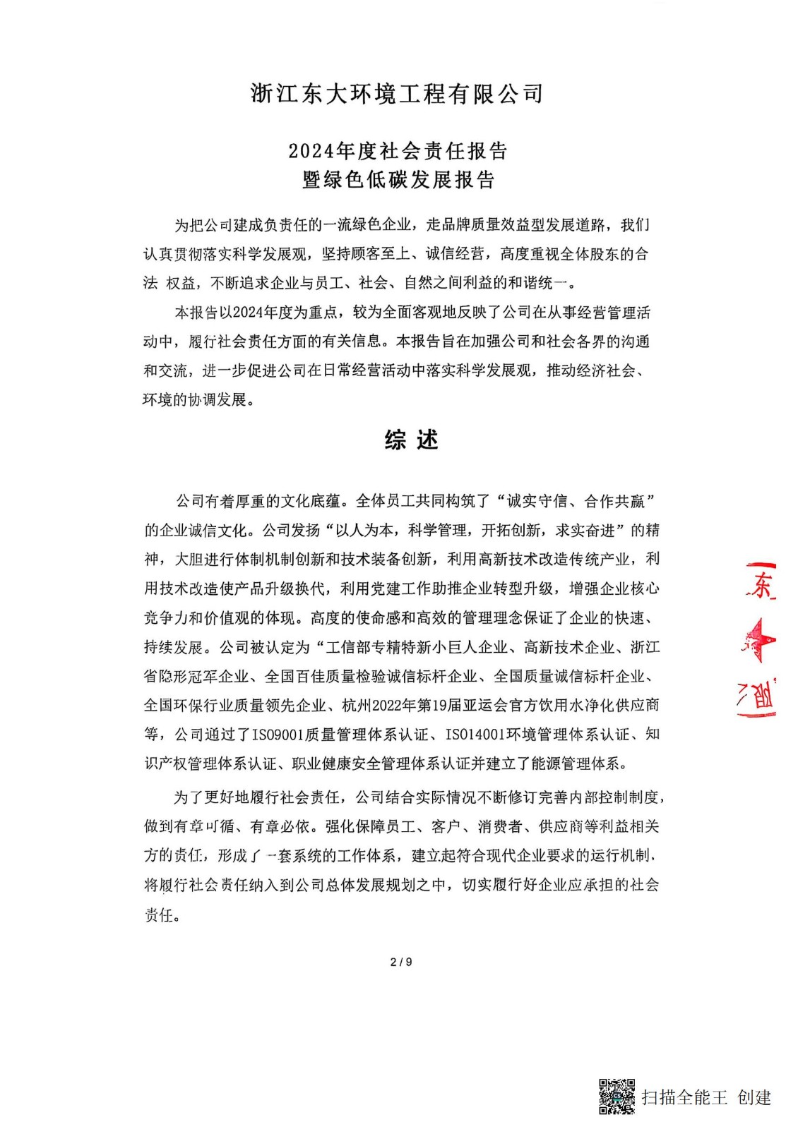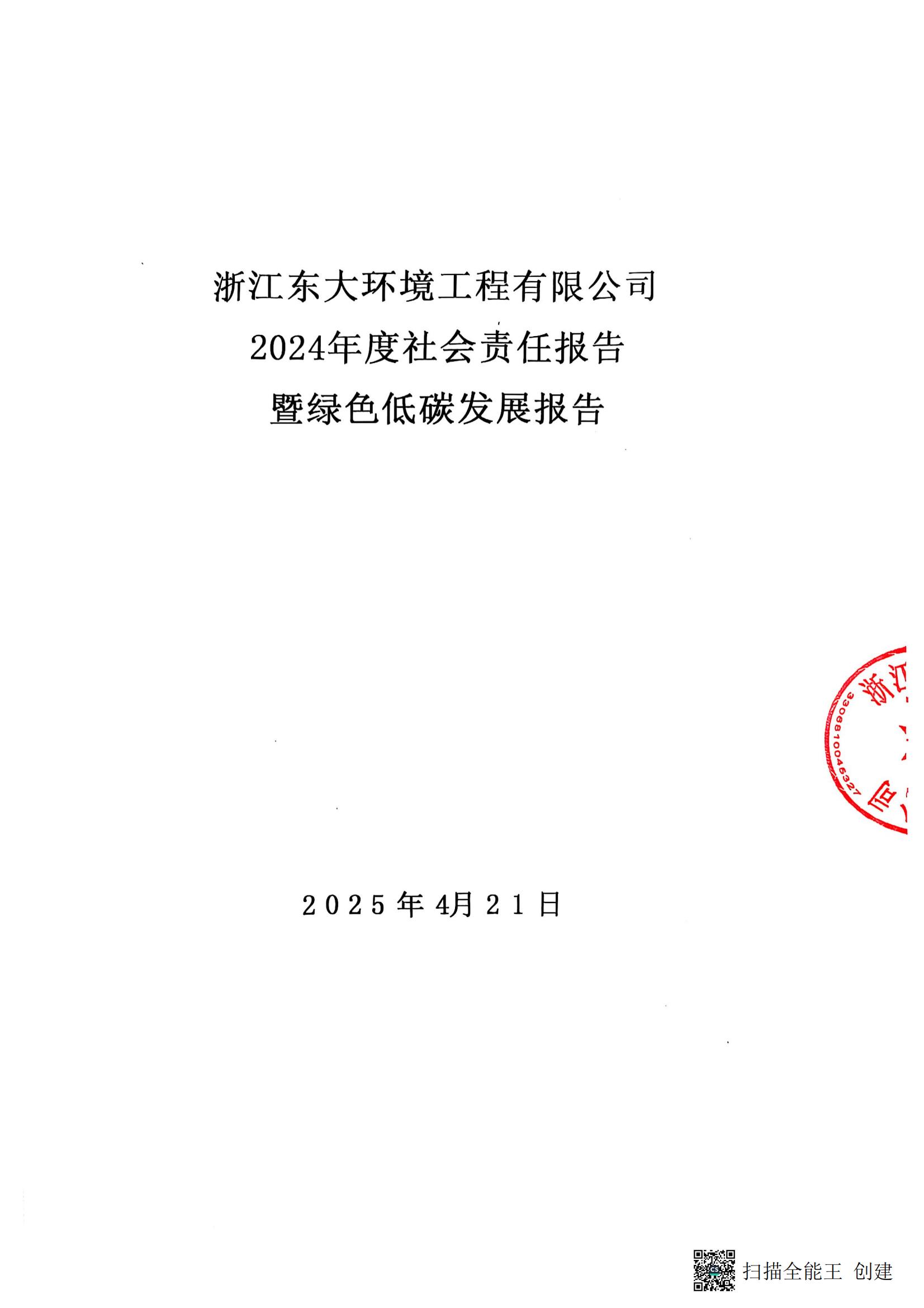 浙江東大環(huán)境工程有限公司2024年度社會責(zé)任報告暨綠色低碳發(fā)展報告